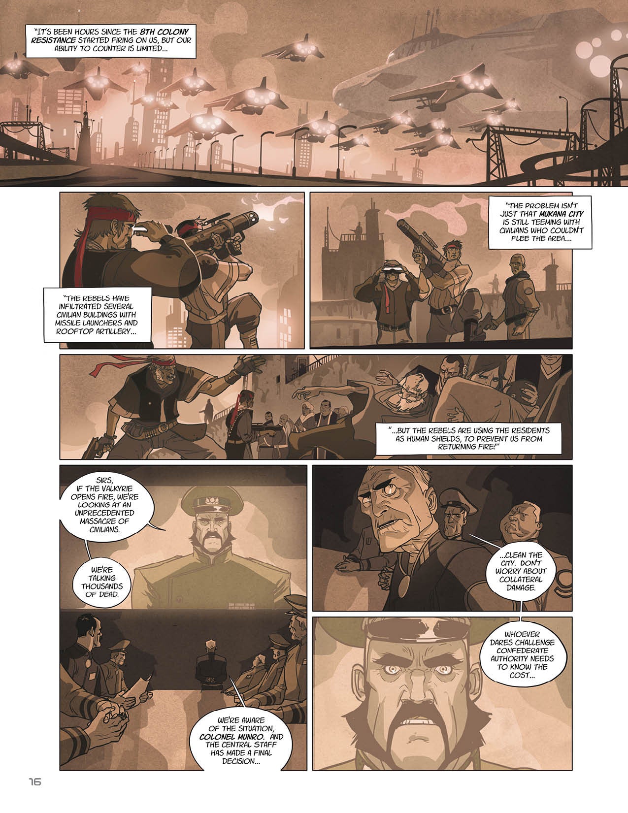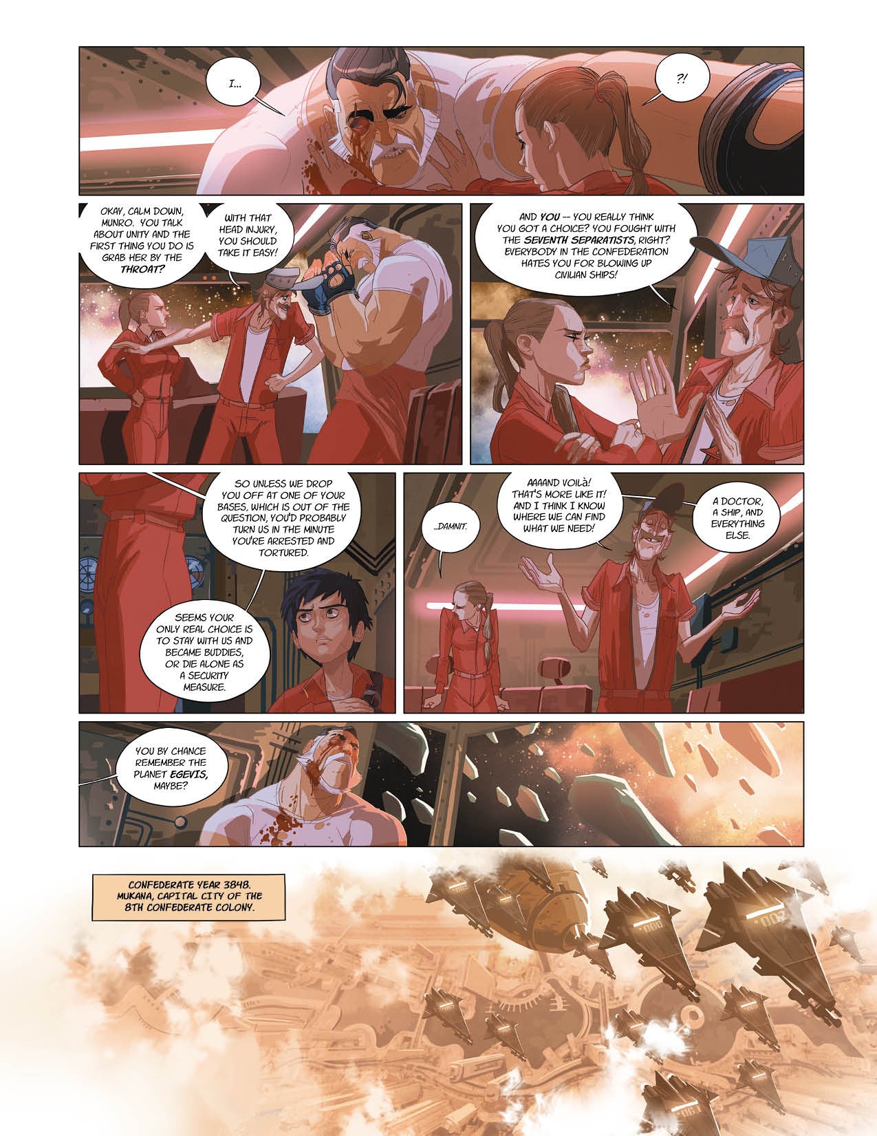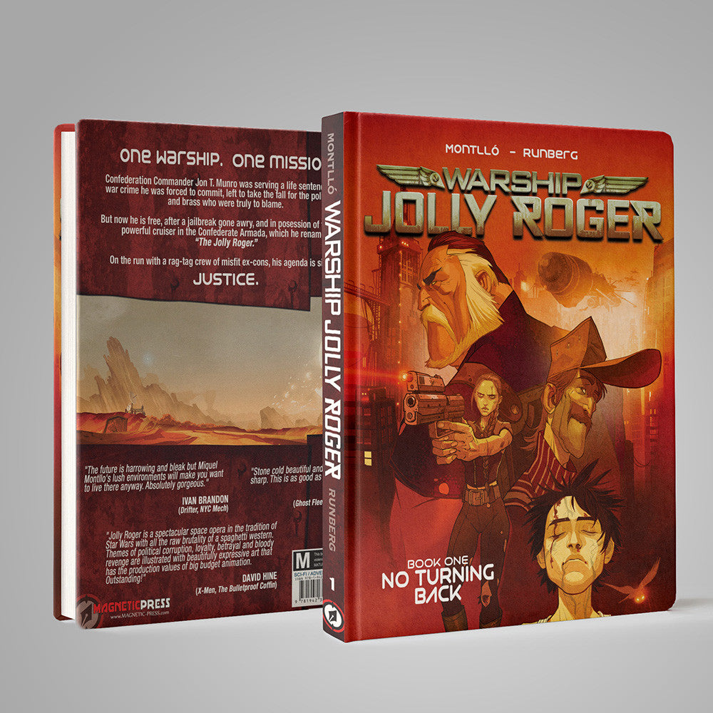 In gritty, star-spread future, where mankind has colonized planets throughout the galaxy, former Confederation Commander Jon T. Munro was serving a life sentence for a war crime he was forced to commit. When a prison break runs amok, however, he seizes the opportunity to escape with a ragtag team of cons to form a small crew of pirates with one goal in mind: vengeful justice. And the first step in their plan is to steal the battle cruiser he once commanded, a state-of-the-art warship they call “The Jolly Roger.” A visually stunning sci-fi adventure, written by Sylvain Runberg (Millennium), with breathtaking artwork by Miquel Montllo, this epic tale of space pirates and political intrigue combines the emotional depth and excitement of sci-fi favorites such as Battlestar Galactica and Starship Troopers, with a visual style that leaps off the page like an animated feature film.