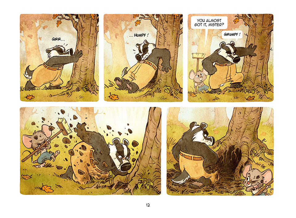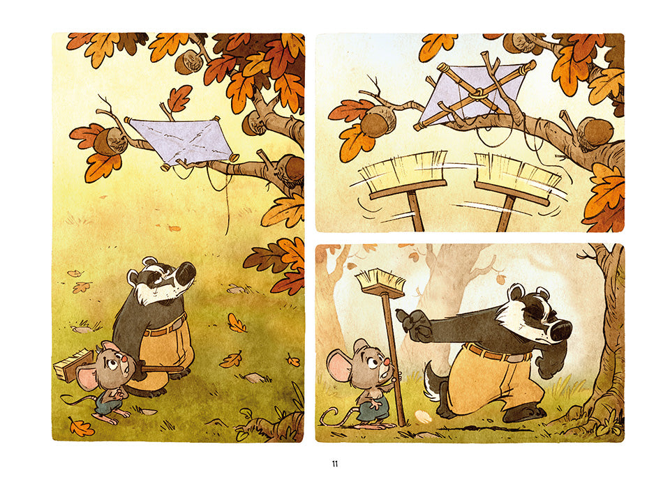 Presenting a new adorable cartooon universe by animator Dav, described as a cross between Michel Plessix’s adaptations of THE WIND IN THE WILLOWS and the cartoons of Walt Disney (in particular those created by Don Bluth, such as THE RESCUERS and ROBIN HOOD), Dav gently conveys each season through a changing palette of colors and rounded designs.