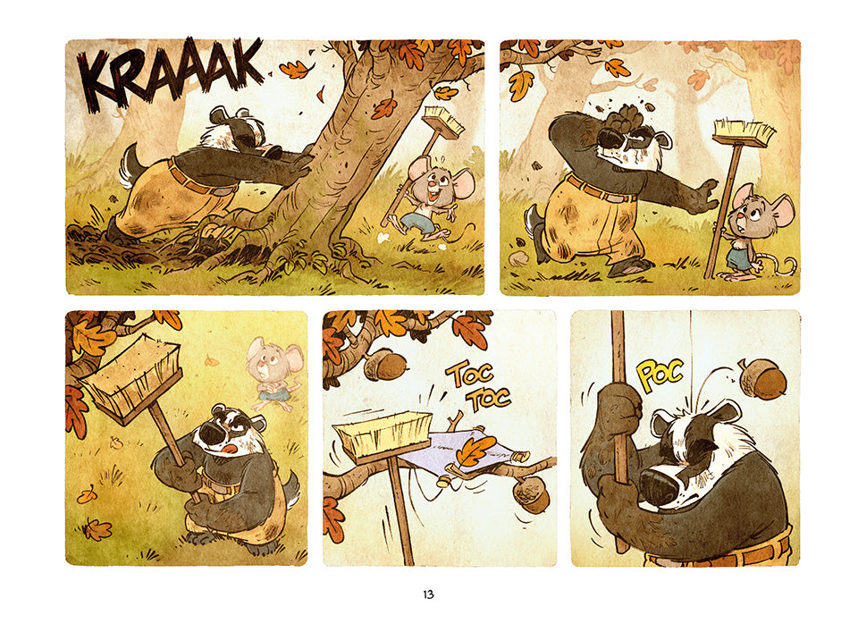 Winter is fast approaching and all the animals in the forest are in full preparation: storing food and provisions, dining on the last worms with the neighbors, etc… All the animals but one: grumpy badger Mr Grumpf just can’t finish sweeping the dead leaves off his doorstep with everyone coming by to disturb him! Grumpf! NOW SHIPPING!