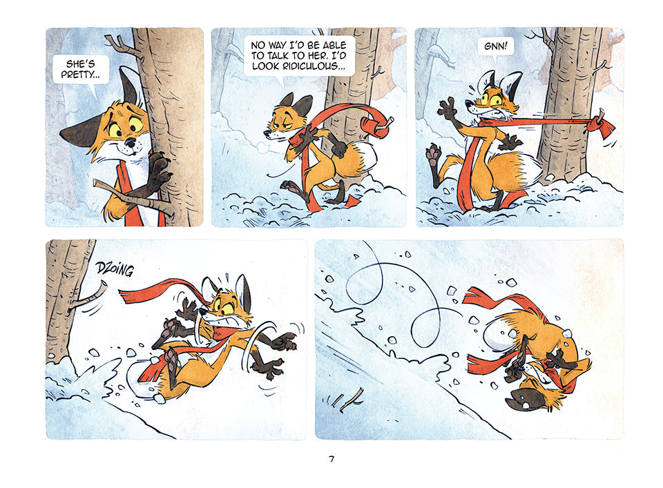 Winter is here, and snow covers the woods like a cold blanket. Mr. Fox has his enormous scarf to keep him warm, but it is almost TOO big -- he can't help but trip over it and get caught on tree branches all the time. But as embarrassing as that is, it is even more humiliating when trying to catch the eye of a beautiful lady! NOW SHIPPING!