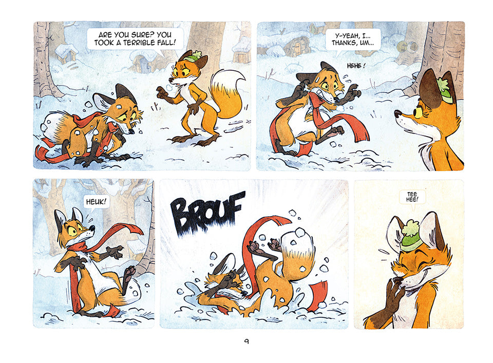 Presenting a new adorable cartoon universe by animator Dav, described as a cross between Michel Plessix’s adaptations of THE WIND IN THE WILLOWS and the cartoons of Walt Disney (in particular those created by Don Bluth, such as THE RESCUERS and ROBIN HOOD), Dav gently conveys each season through a changing palette of colors and rounded designs.