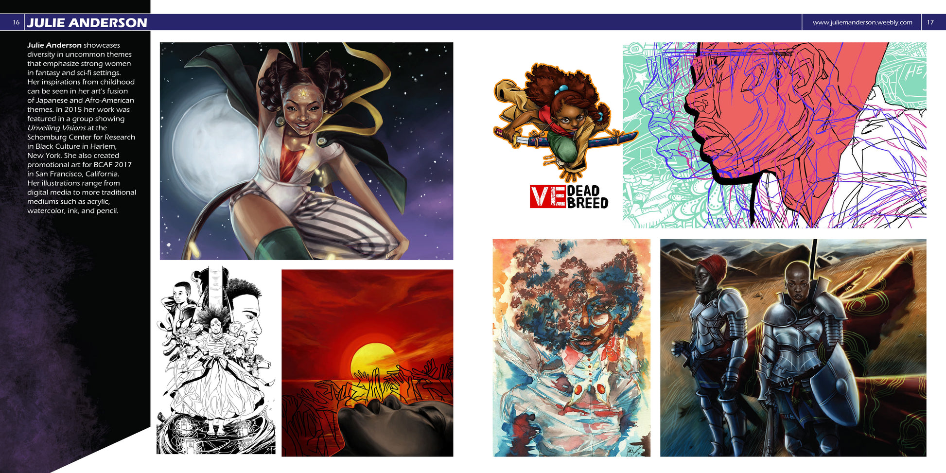 Illustrated by: Abdul H. Rashid, Afua Richardson, Akinseye Brown, Alex Simmons, Andre Batts, Anthony Pugh, Arie Munroe, Ashely A. Woods, Avy Jetter, Barrington Edwards, Ben Passmore, Brandon Easton, Brandon Thomas, Bryan Cristopher Moss, C. Spike Trotman, C. Steenz Stewart, Carl Varnardo, Charlie Goublie, Chris Visions, D.J. Kirkland, Darryl Ayo Braithwaite, Dashantren Williams, Dave Crosland, David Brame, David Walker, Dawud Anyabwile, Enrique Carrion, Eric Battle, Fred Noland, Greg Anderson-Elysee, Jamal Igle, Jamar Nicholas, James Stanley, Jason Reeves, Jeremy Love, Jerome Walford, Jerry Craft, Jiba Molei Anderson, Joe Illidge, Joel Christian Gill, Joseph Wheeler III, Julian Lytle, Juliana "Jewels" Smith, Julie Anderson, Keef Cross, Keith Knight, Khari Evans, Khary Randolph, Kwanza Osajyefo, Kyle Baker, La Morris Richmond, Lance Tooks, Leisl Adams, M. Rasheed, Madtwiinz, Mark and Mike Davis, Matthew Clarke, Michael Lee Harris, Michael Watson, Michelline Hess, N. Steven Harris, Naseed Gifted, Odera Igbokwe, Paris Alleyne, Phonzie Davis, Regine Sawyer, Robert Jeffrey II, Robert Love, Robert Roach / Antidote, Ronald Wimberly, Sanford Greene, Sean Mack, Sharon DeLaCruz, Shauna J. Grant, Shawn Alleyne, Shawn Martinbrough, Shawn Taylor, Shawna Mills, Shawnee´ and Shawnelle Gibbs, Sole Rebel, Stacey Robinson, Stanford Carpenter, Stéphane Métayer, Takeia Marie, Tanna Tucker, Te'Shawn Dwyer, Tim Fielder, Tim Smith, Tony Puryear, Turtel Onli, Uraeus (Richard G. Tyler II), Victor Dandridge, Whit Taylor, and more!