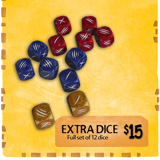 An extra set of 12 color-coded KLAW dice (5 attack dice, 5 defense dice, and 2 wild dice).