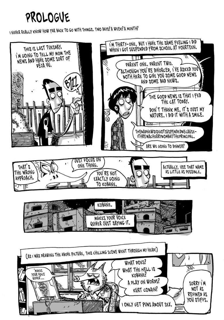 KOBANE CALLING is the autobiographical memoir of a young Italian cartoonist, writing and drawing under the nom-de-plume Zerocalcare, who volunteers with the Rojava Calling organization and heads into the Middle East to support and observe the Kurdish resistance in Syria as they struggle against the advancing forces of the Islamic State. He winds up in the small town of Mesher, near the Turkish-Syrian border as a journalist and aid worker, and from there he travels into Ayn al-Arab, a majority-Kurd town in the Rojava region of Syria. As he receives an education into the war from the Kurdish perspective, he meets the women fighting in the all-female Kurdish volunteer army (the Yekeineyen Parastina Jin, or Women’s Defense Units), struggling to simultaneously fight off the Islamic State even as they take strides for Kurdish independence and attempt a restructuring of traditional patriarchal Kurdish society. In a story and style at once humorous and heartbreaking, Zerocalcare presents clear-eyed reportage of the fight against the Islamic State from the front lines.