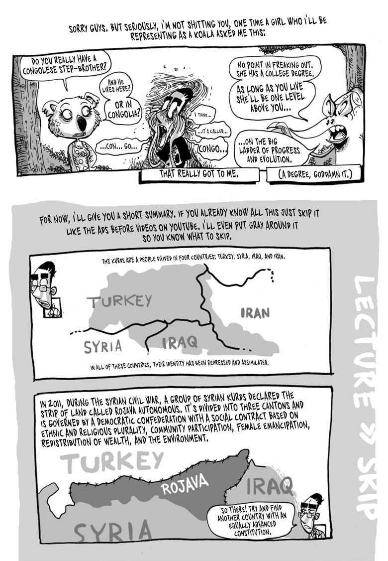 The autobiographical memoir of a Italian humor cartoonist who volunteered to support and observe the Kurdish resistance in Syria as a journalist and aid worker. He winds up in Ayn al-Arab, a majority-Kurd town in the Rojava region of Syria, on the front lines against the encroaching Islamic State, and there he receives a heartbreaking education into the Syrian Civil War.