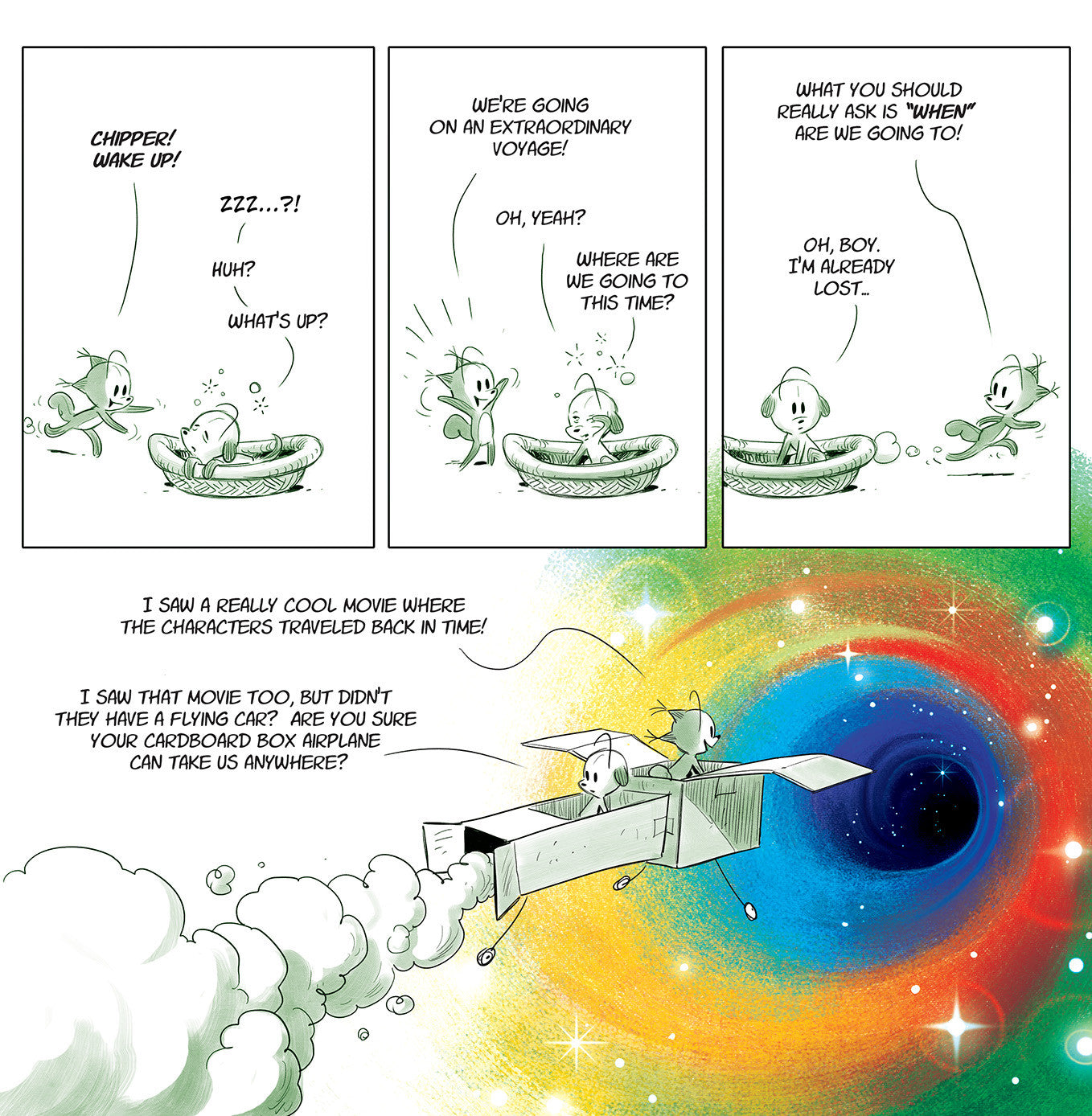 Chipper and Squizzo turn their cardboard box airplane into a time machine and travel to the prehistoric past to visit a world full of dinosaurs, ancient animals, and early man!
