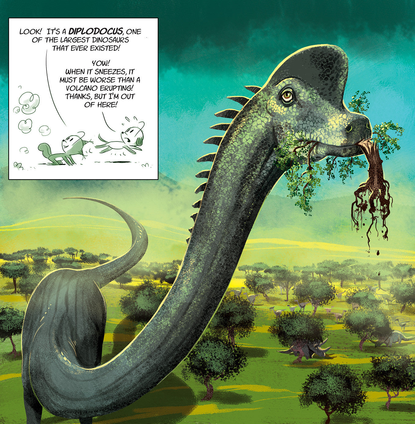 In this fourth volume, the pint-sized explorers go on a time-hopping trip into the prehistoric past, where they’ll meet dinosaurs, ancient animals, and early man!