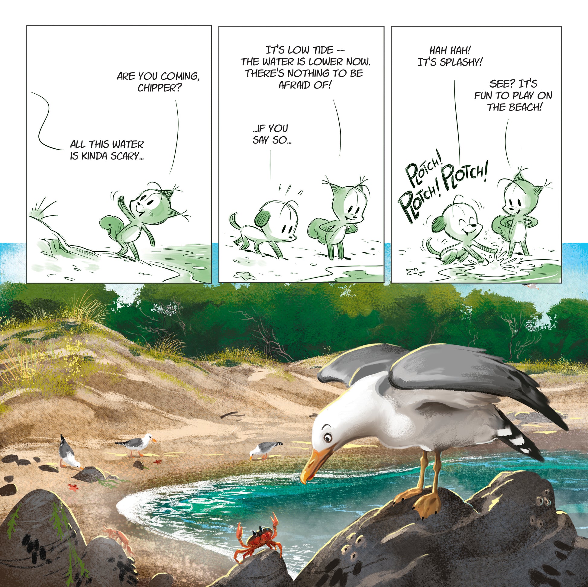 Chipper and Squizzo are a precocious puppy and squirrel who love to explore new and exciting environments, flying their cardboard box airplane to wondrous worlds full of fascinating animals and creatures. In each volume of this fun, educational series, they tour a different location, encountering the real-world animals found there in beautiful illustration and fun cartoon strip antics! In this sixth volume of the series, the scrappy duo take a trip under the sea to explore the strange and interesting wildlife found in the ocean!Little Tails is a series of young readers graphic novels created by Eisner Award–nominated illustrator Federico Bertolucci and writer Frédéric Brrémaud, creators of the world-famous, multi-award-winning Love series of silent, wildlife graphic novels.