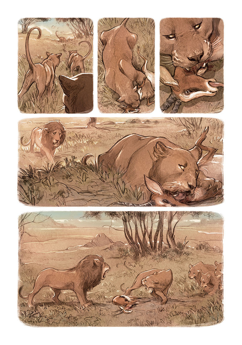 In the Serengeti, even a King must fight to survive. A powerful, wordless look at a day in the life of a mighty Lion, told entirely through breathtaking illustration. TWO 2017 EISNER AWARD NOMINATIONS -- Best U.S. Edition of International Material, Best Painter/Multimedia Artist
