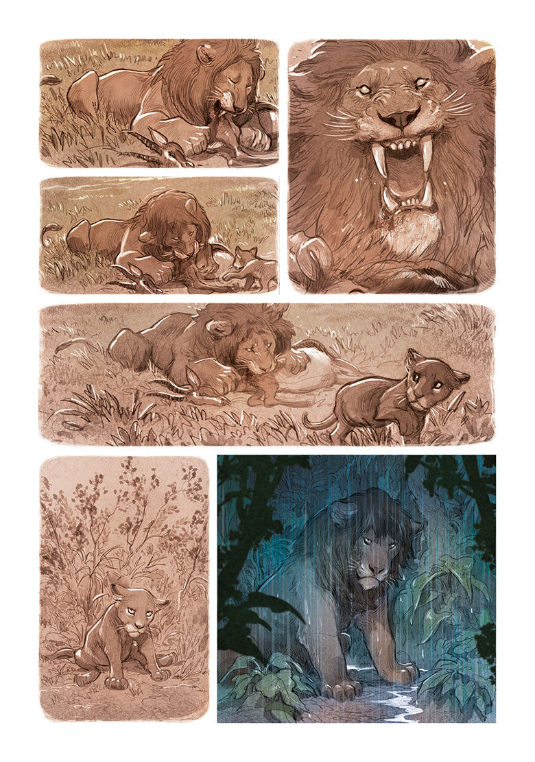 The third volume in the lavishly illustrated series of wildlife graphic novels, each following a single central animal through an adventurous day in their natural environment. Each tale depicts genuine natural behavior through the dramatic lens of Disney-esque storytelling, like a nature documentary in illustration. Both heartwarming and heartbreaking, this volume focuses on a solitary lion as it wanders the plains of Africa, handling the daily hunt, and vicious rivalry, without a pride of its own. The circle of life takes center stage in a world where predator and prey trade places on a regular basis, and family is something worth fighting—and dying—for. This exciting tale, written by Frederic Brrémaud, is told without narration or dialogue, conveyed entirely through the beautiful illustrations of Federico Bertolucci. A beautiful, powerful tale of survival in the animal kingdom that explores the all-too-identifiable, universal concepts of life, courage, aging, and ultimately love.
