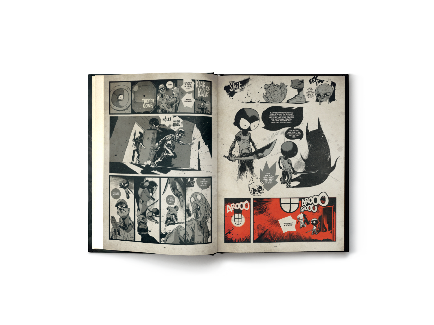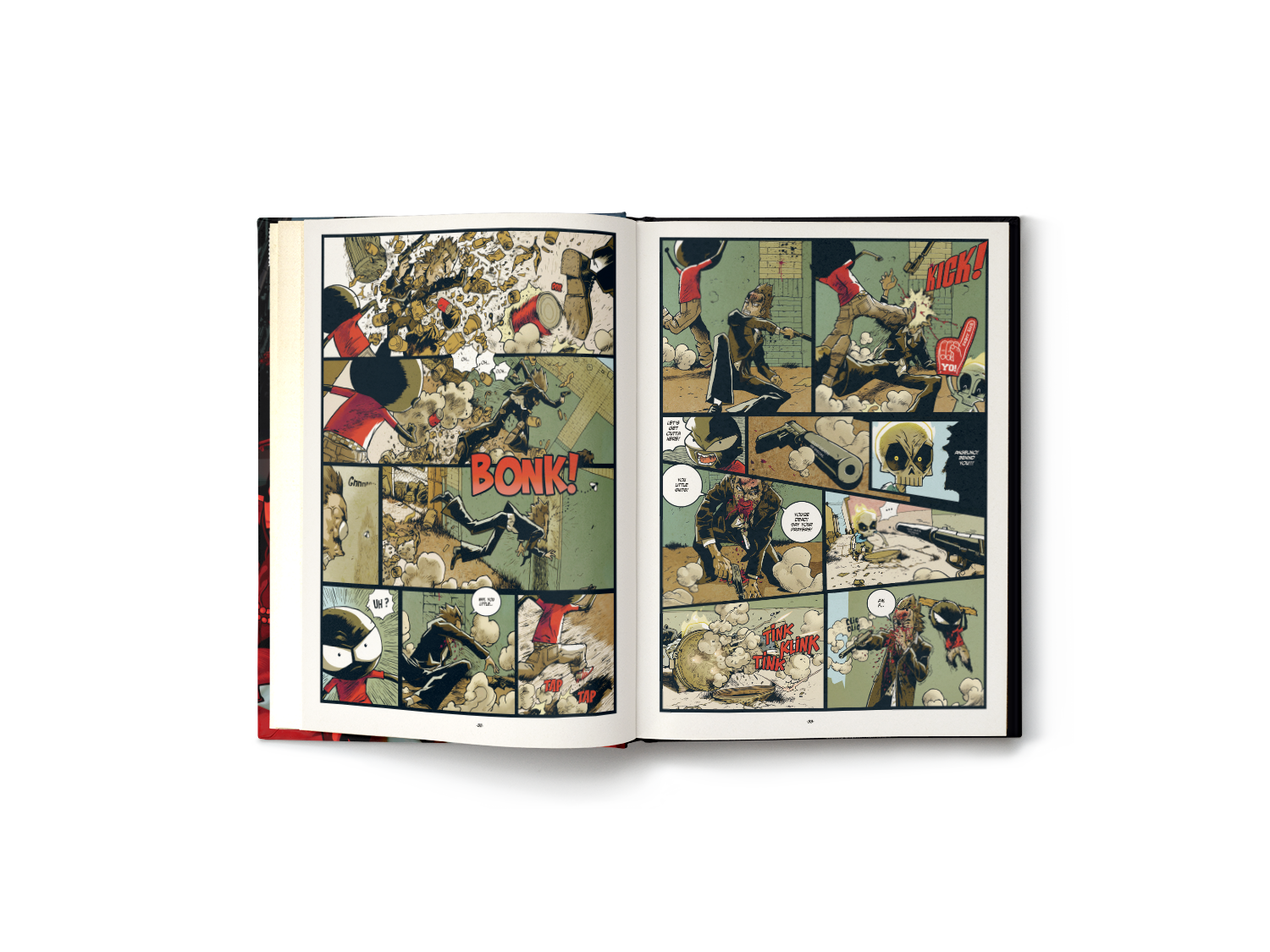 For the complete experience, a Deluxe Slipcase Edition will feature a copy of all five volumes fitted inside a premium slipcase with metallic foil elements and a printed slipcase liner. Each Slipcase includes a numbered bookplate. INCLUDES A LIMITED EDITION BUNDLE OF BONUS ITEMS, INCLUDING A SET OF STICKERS, A COASTER, 2 FABRIC PATCHES, A SET OF POSTCARDS, TWO CLOISSONE PINS, TWO PVC KEYCHAINS, A LOGO TOKEN, AND A PACK OF RETRO TRADING CARDS! (While supplies last.)