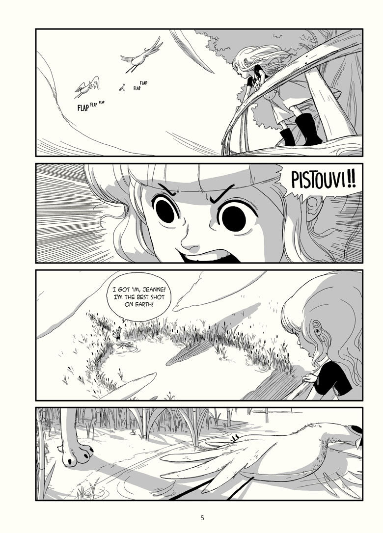 They share a charming little treehouse surrounded by a magical prairie tended by a giant ‘tractor man and the wind spirit he loves. Together, Jeanne and Pistouvi spend frolicking days without a care, but soon, the birds arrive, and everything changes... NOMINATED FOR A 2021 EISNER AWARD!
