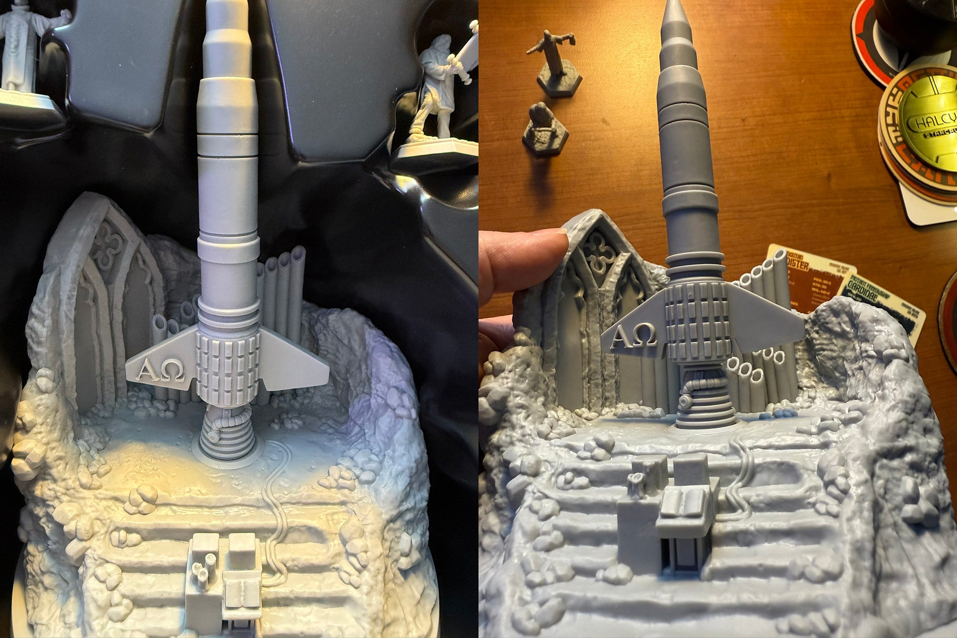 Miniature Expansion Set for the PLANET OF THE APES RPG, featuring an Alpha Omega Bomb with church base, Mutant Priest, Orangutan Minister, and the Statute of the Lawgiver. THESE WILL NOT BE AVAILABLE AT RETAIL!